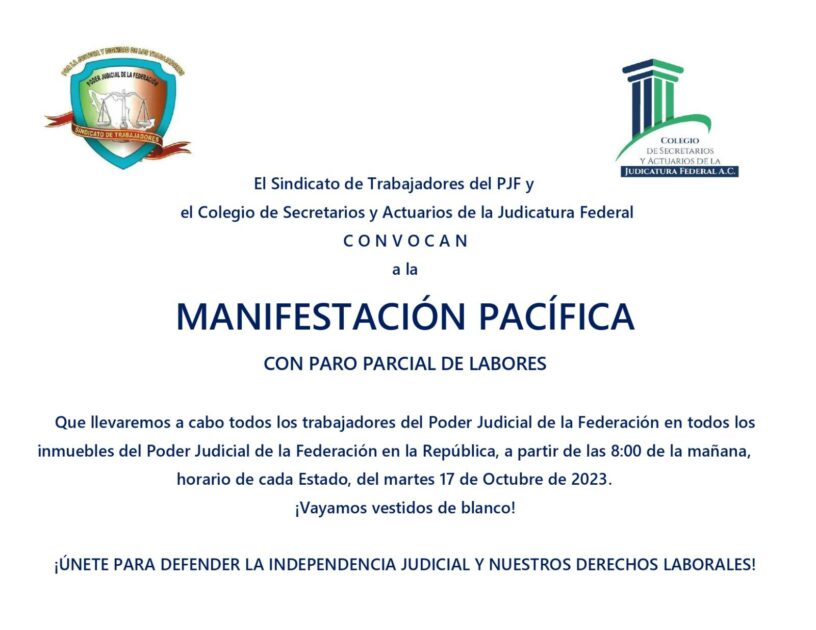 Esa protesta es una más de las que se llevarán a nivel nacional, el mismo día, en todos los edificios del PJF; es más que evidente que detrás de esto subyace el afán de debilitar a una de las pocas instituciones que guarda independenciacontrario a lo que el titular del Poder Ejecutivo Federal considera por un mero capricho, hacerse de la institución a más tardar en el próximo sexenio, lo que sería un golpe de muerte para nuestra democracia.