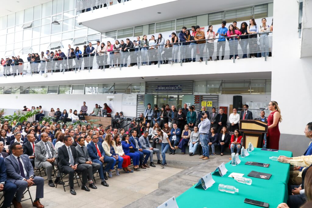 Frente a la comunidad estudiantil, docente y administrativa de la facultad, de donde es egresada, señaló que estar en este espacio le trae muchos recuerdos, experiencias y aprendizajes, al tiempo que felicitó a todas y todos y reconoció la labor de las maestras y maestros, que dijo, han sido responsables de la transformación de muchas y muchos jóvenes.