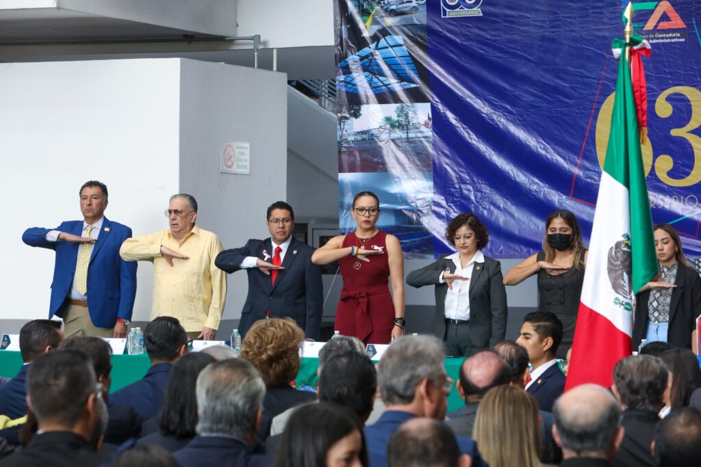 Pero no podemos detenernos aquí, añadió, el mundo sigue cambiando a un ritmo vertiginoso y debemos continuar adaptándonos, innovando y manteniendo nuestra posición como líderes en la formación de profesionales en la contaduría, en la administración y en la informática.
