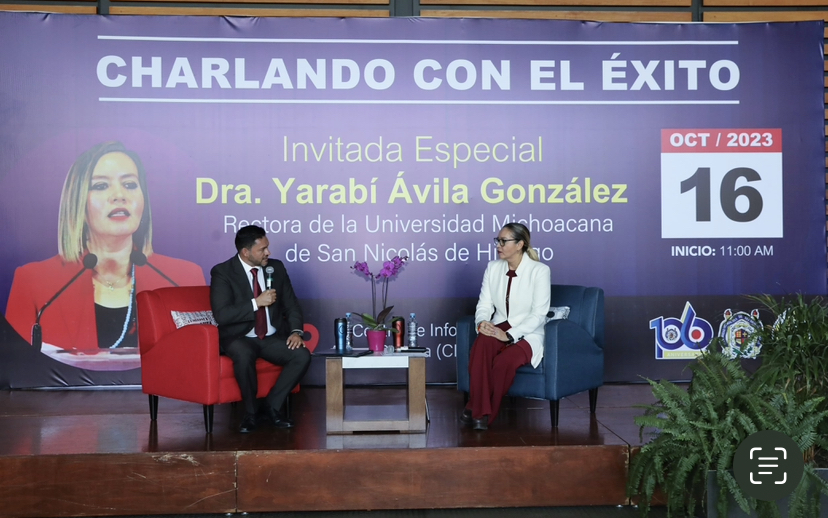 “Trabajar en la Universidad Michoacana es la mayor satisfacción que he tenido, es algo apasionante”, afirmó la rectora Yarabí Ávila González, al compartir con un auditorio lleno de jóvenes aspectos de su vida personal y profesional, en el programa “Charlando con el éxito”, que realiza la Facultad de Ingeniería Civil.