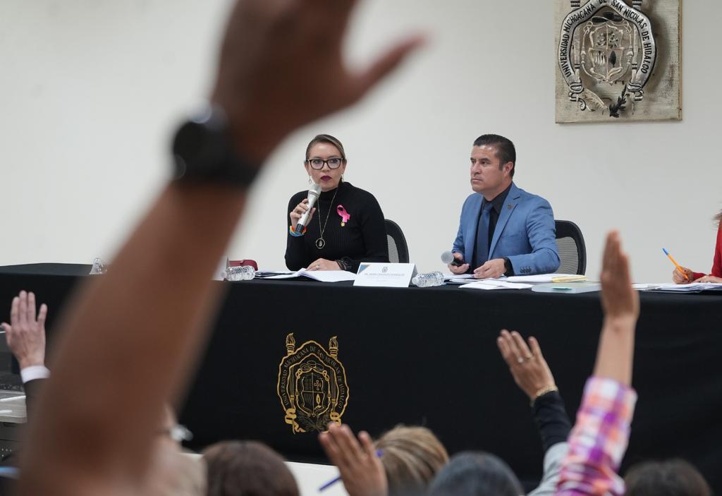 La rectora Yarabí Ávila González tomó protesta a ambos directores, a quienes felicitó e invitó a continuar trabajando en equipo siempre pensando en el bienestar de la Universidad Michoacana de San Nicolás de Hidalgo.