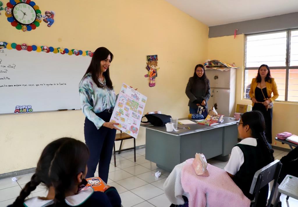 En su recorrido por el plantel que atiende a 280 niñas y niños, la jefa del sector educativo dialogó con docentes y estudiantes, muchos de ellos, migrantes que llegan de Guerrero, Tijuana y Oaxaca, quienes mostraron su entusiasmo al estar usando los libros de texto gratuitos de la Nueva Escuela Mexicana (NEM).