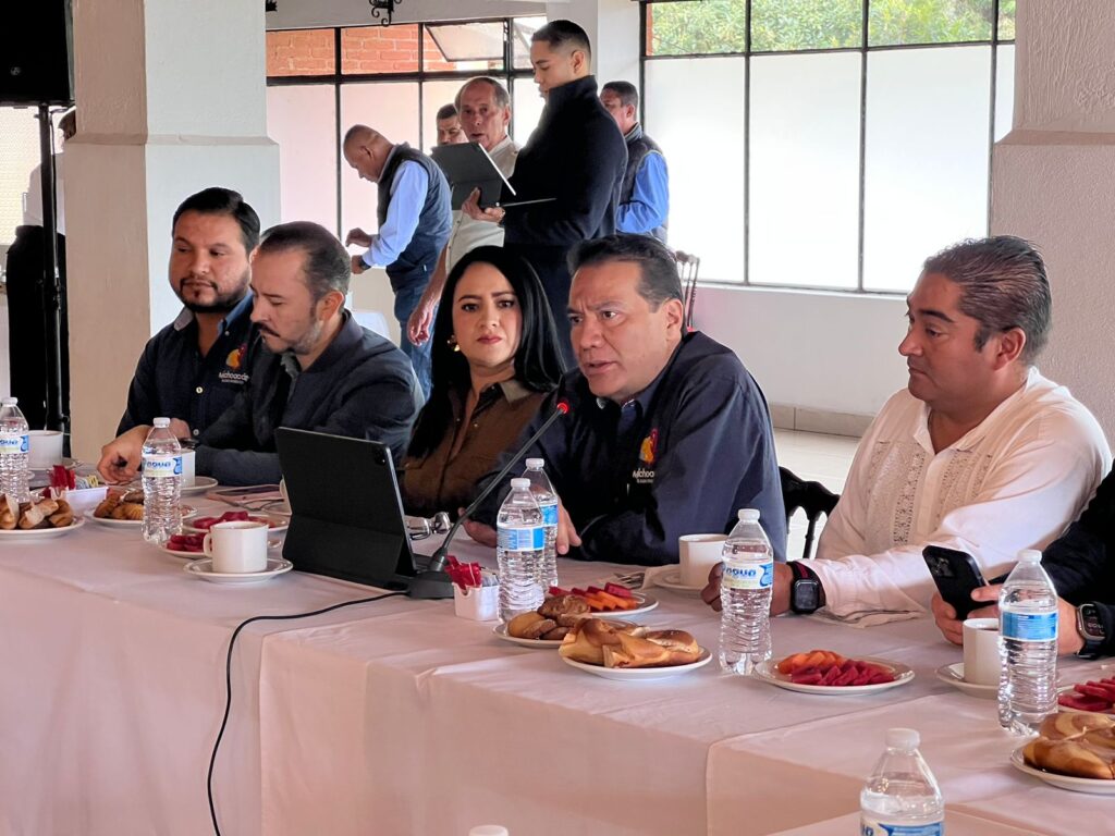 En una reunión encabezada por Roberto Monroy García, secretario de Turismo; Gladys Butanda Macías, secretaria de Desarrollo Urbano y Movilidad; Juan Carlos Oseguera, subsecretario de Gobernación; y Juan Manzo Rodríguez, director de la Comisión Coordinadora del Transporte Público; solicitaron a las autoridades trabajar en conjunto sociedad y gobierno para impulsar los atractivos con los que cuenta Uruapan, como el Barrio Mágico de San Pedro y las áreas naturales, así como el turismo religioso y de aventura.