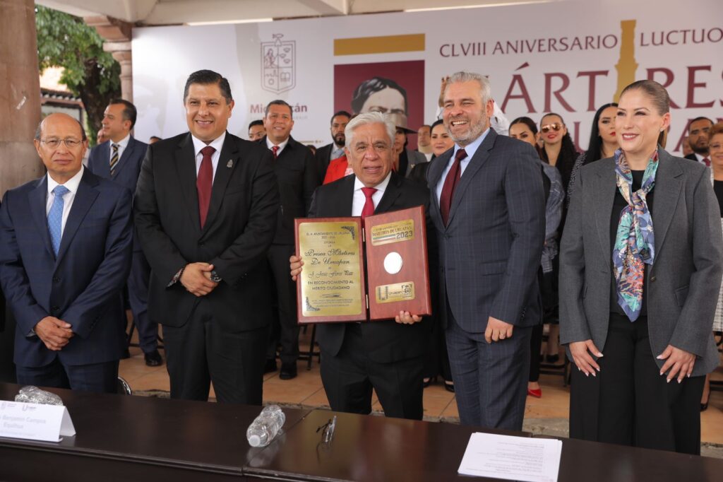 Por otra parte, en el mismo acto solemne, Ramírez Bedolla entregó la Presea Mártires de Uruapan a Martina Navarro González, en la categoría cultural en artes aplicadas; Víctor Javier Marín Gutiérrez, en la artística; y a J. Jesús Flores Paz, en la altruista.