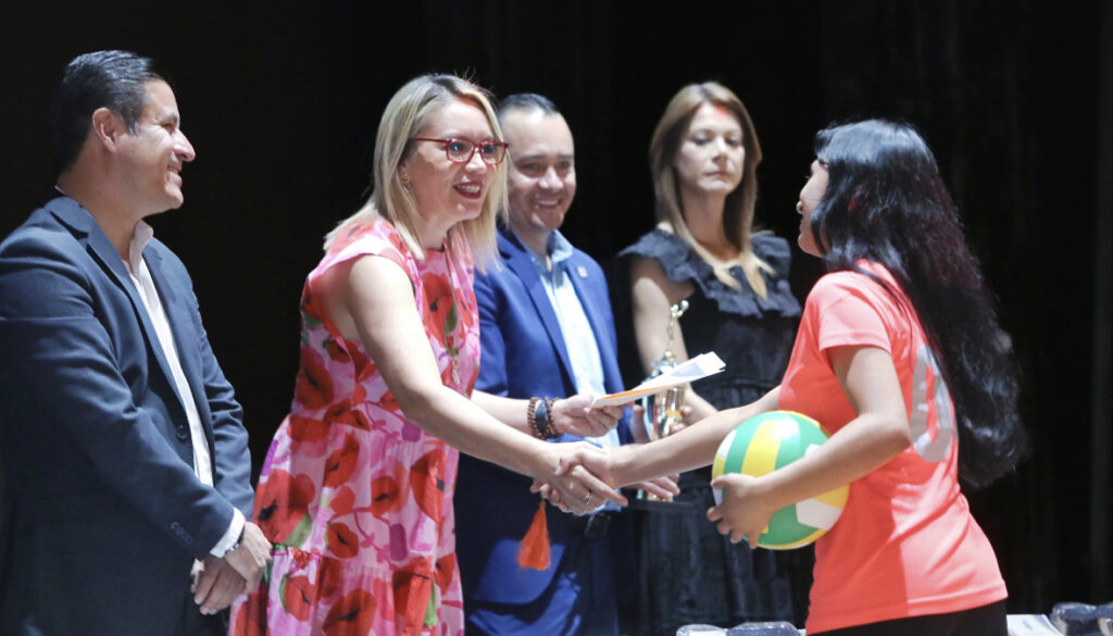 El Departamento de Asuntos Estudiantiles reconoció a quienes fueron los protagonistas de los primeros lugares en las competencias que se desarrollaron el fin de semana en canto, danza, futbol, básquetbol y atletismo, y también a las y los estudiantes que han sido primeros lugares en desempeño académico, entre quienes destacan las alumnas recipiendarias del Premio “Padre de la Patria”: Santa Moreno Morales de Agrobiología, y Julieta García de Ingeniería Eléctrica.