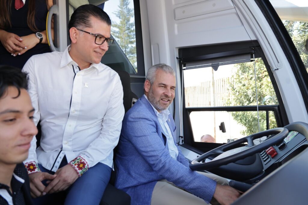 El mandatario Alfredo Ramírez Bedolla, entregó a la comunidad estudiantil del Instituto Tecnológico de Morelia (ITM), un autobús adquirido en coparticipación del Gobierno del Estado y de la misma institución.