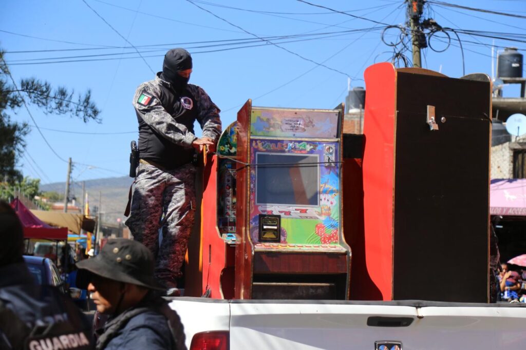 Como resultado de diversos cateos realizados por personal de la Fiscalía General del Estado de Michoacán (FGE), en coordinación con la Coordinación Nacional Antisecuestro (CONASE), y la Secretaría de Seguridad Pública, a través de la Subsecretaría de Investigación Especializada (SIE), se logró el aseguramiento de 127 máquinas tragamonedas.