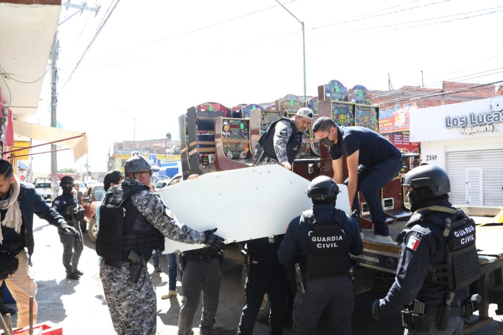 En cumplimiento a estos mandatos judiciales, personal de la Institución, con apoyo de CONASE y la SIE, se trasladaron a las colonias Josefa Ocampo De Mata, Solidaridad, Ampliación Gertrudis Sánchez, Lázaro Cárdenas y Centro, dando como resultado el aseguramiento de 127 máquinas tragamonedas.