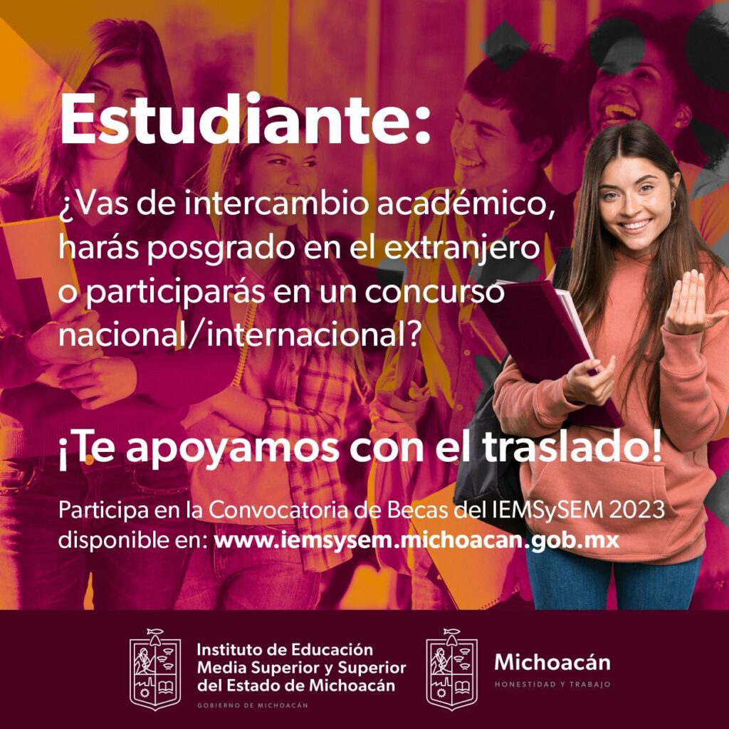 La directora general del Instituto de Educación Media Superior y Superior del Estado de Michoacán, Mariana Sosa Olmeda, anunció que gracias a la recaudación de ingresos propios del IEMSySEM, se cuenta con una bolsa de recursos que serán destinados para solventar gastos complementarios de transporte aéreo o terrestre en caso de intercambio estudiantil, estudio de posgrado nacional o extranjero, o la representación institucional en algún concurso.