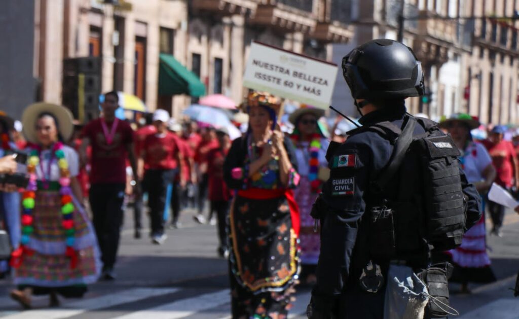 En Morelia, los agentes de la Guardia Civil desfilaron con un contingente multideportivo. La ciudadanía pudo disfrutar sin contratiempos de esta conmemoración en la entidad, gracias los dispositivos de seguridad interinstitucionales que se realizaron.