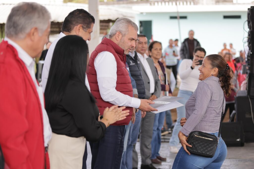 El gobernador Alfredo Ramírez Bedolla, entregó 300 escrituras de propiedad a habitantes de la colonia Clara Córdova Morán, del municipio de Uruapan.