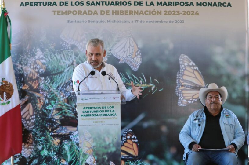 El gobernador Alfredo Ramírez Bedolla, afirmó que con el presupuesto 2024 aumentará el pago por hectárea conservada en la zona núcleo de la Reserva de la Biósfera de la Mariposa Monarca.