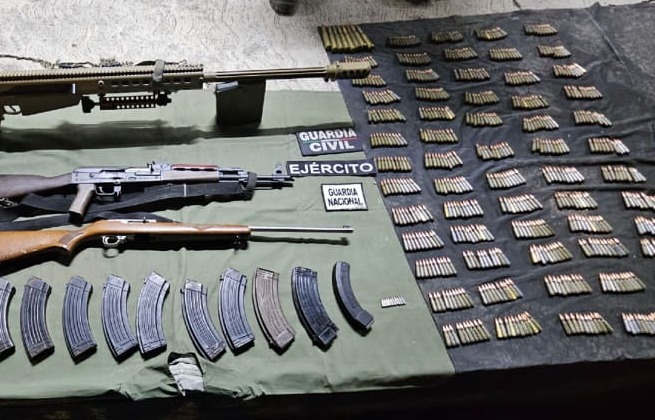 La Guardia Civil, en estrecha colaboración con el Ejército y la Guardia Nacional (GN) hicieron un operativo conjunto, dando como resultado el aseguramiento de diversas armas de fuego de alto poder, cartuchos y cargadores, así como la recuperación de un vehículo con reporte de robo.