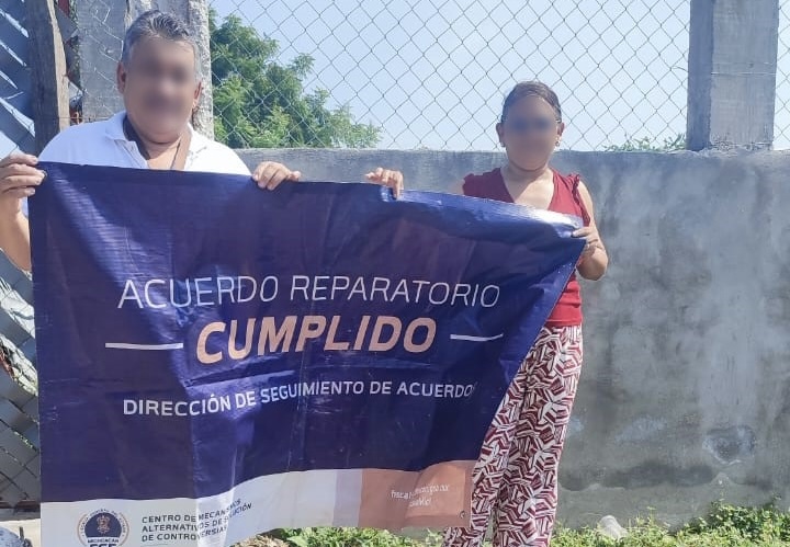Tras los actos de investigación, el expediente fue derivado al CMASC, desde donde se emitió una invitación a las partes intervinientes a solucionar este conflicto mediante un acuerdo reparatorio, el cual fue celebrado y concluyó con la restitución del inmueble.