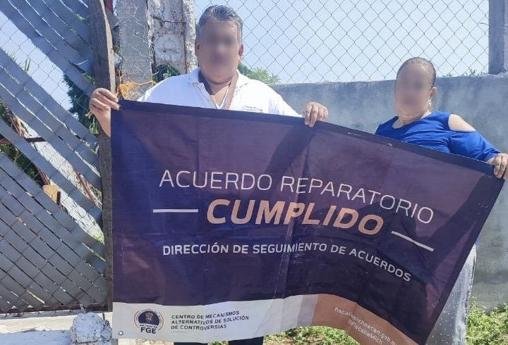 La Fiscalía General del Estado de Michoacán (FGE) logró, a través del Centro de Mecanismos Alternativos de Solución de Controversias (CMASC), la restitución de un inmueble en favor de Diana María L., víctima del delito de despojo, en Lázaro Cárdenas.