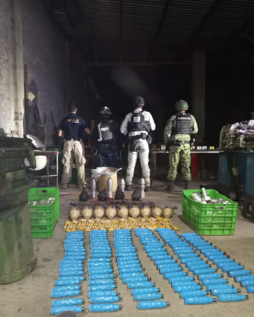 En el lugar se ubicaron artefactos explosivos, así como maquinaria para su elaboración, por lo que se solicitó el apoyo de personal especializado de la Secretaría de la Defensa Nacional para la identificación y desactivación de dicho material.