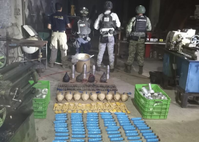 En el lugar se ubicaron artefactos explosivos, así como maquinaria para su elaboración, por lo que se solicitó el apoyo de personal especializado de la Secretaría de la Defensa Nacional para la identificación y desactivación de dicho material.