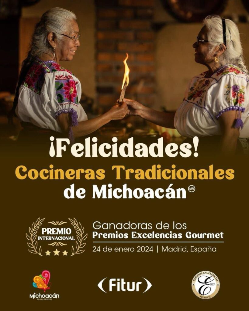 Las cocineras tradicionales de Michoacán conquistaron la 19 edición de los Premios Excelencias Gourmet 2023 al coronarse como ganadoras, en el marco la Feria Internacional de Turismo (Fitur) que se desarrolla en Madrid, España.
