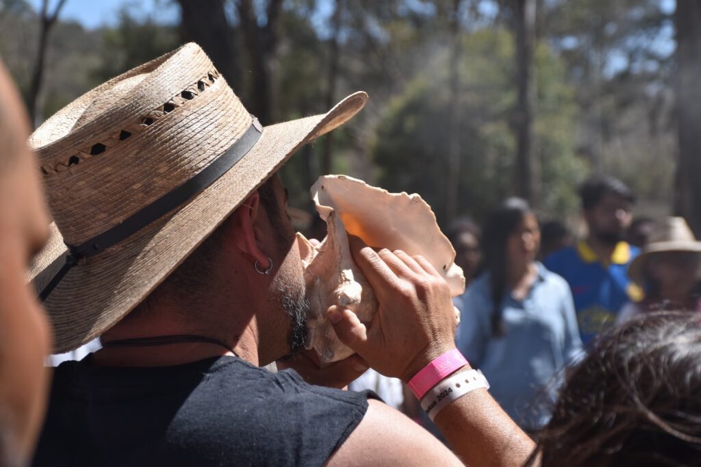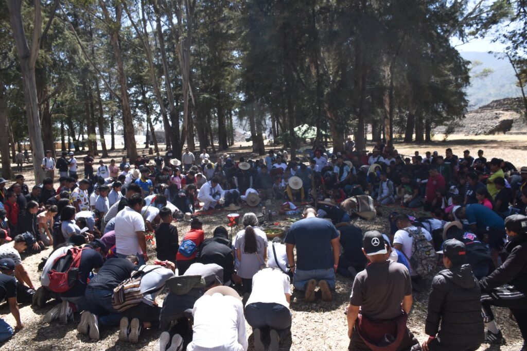 Desde la zona arqueológica, mujeres portadoras del fuego levantaron el humo del copal y ofrendaron su palabra. “Aquí y ahora está la esencia de nuestro corazón y nuestra habla; por eso están los que cantan, los que bailan y los que tocan con el espíritu de nuestros ancestros y ancestras; por eso estamos aquí hoy para pedirles permiso”, dijo Nana Josefina Chávez Guerrero, de Cherán.
