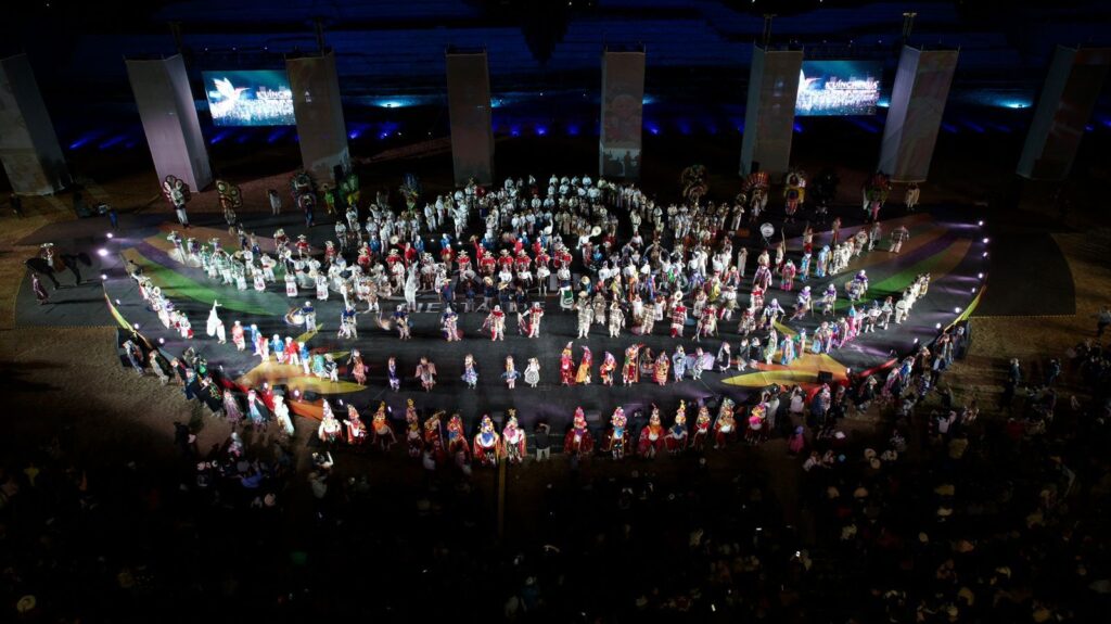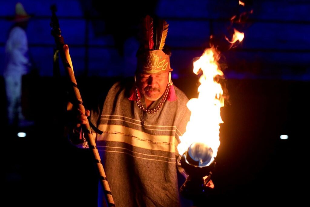 La noche posa sobre el patio interior del antiguo imperio purépecha, las y los portadores de tradiciones se alistan tras bambalinas, los nervios fluyen y el público espera ansioso para disfrutar de la K’uínchekua, la fiesta de Michoacán.