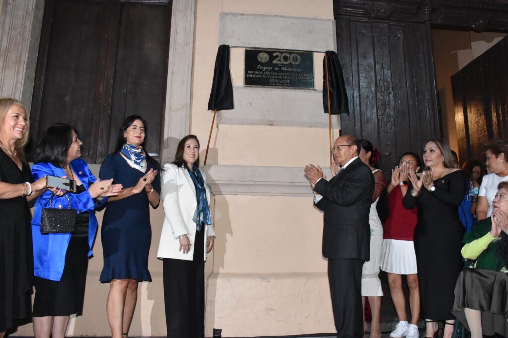 Una vez culminada la Sesión Solemne, las y los legisladores develaron la placa conmemorativa por el Bicentenario del Primer Congreso Constituyente de Michoacán de Ocampo, y junto con los asistentes presenciaron una proyección de video mapping en la fachada del Poder Legislativo del Estado.