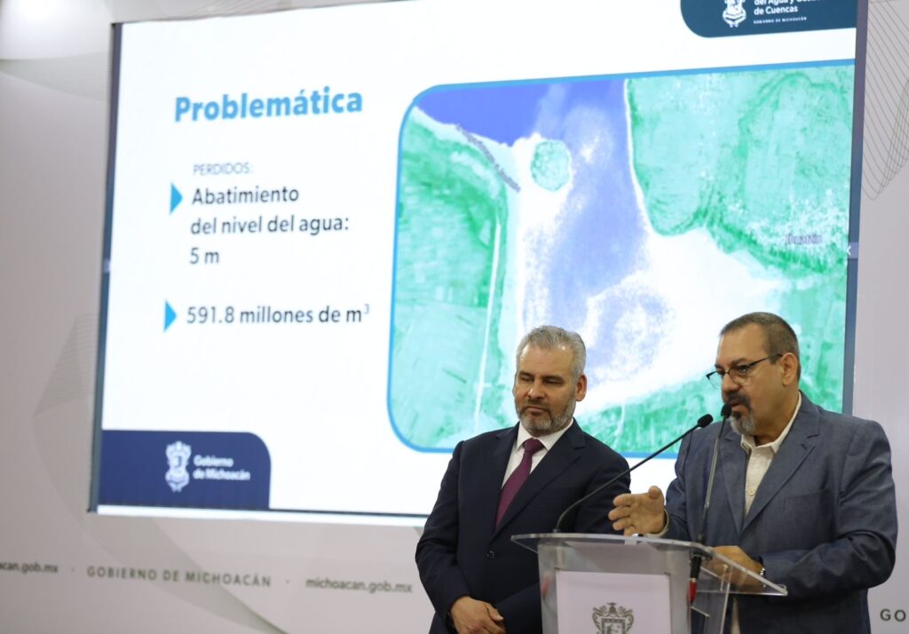 A su vez, el secretario de Medio Ambiente, Alejandro Méndez López explicó que los trabajos contemplan la construcción de pequeñas represas de piedra en los puntos identificados que aportan más azolve al cuerpo de agua, ubicados en Erongarícuaro y el suroeste de la zona; así como zanjas trinchera y curvas de nivel.