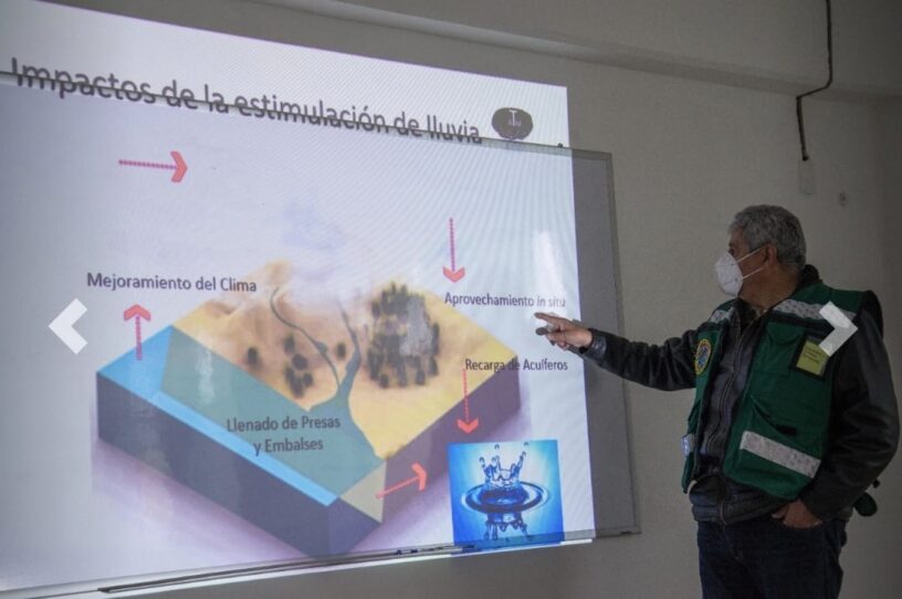 Una vez que esa fórmula es liberada, propicia que las gotas se unan, se condensen y se desate la precipitación pluvial; explicó que, de manera normal, de la humedad que contienen las nubes, el 3 por ciento es lo que cae en forma de lluvia, por lo que la aplicación del yoduro de plata hace que la condensación se incremente hasta un 5 o 6 por ciento.