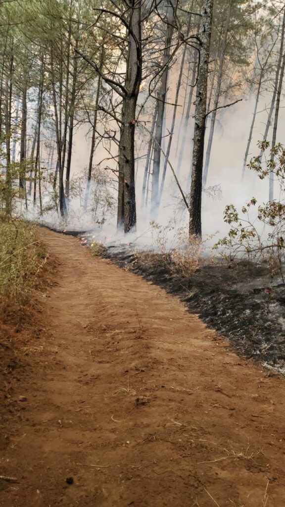 De acuerdo con el reporte del Centro Estatal de Manejo del Fuego, brigadas de la Cofom, Ayuntamiento y bomberos locales y voluntarios hacen frente a este siniestro.