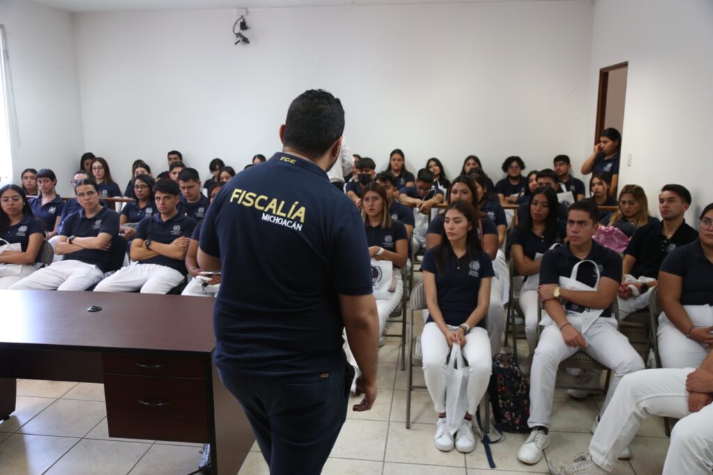 Como parte de las acciones que se realizan para coadyuvar en el desarrollo de las y los jóvenes michoacanos y reforzar el vínculo con las instituciones de nivel superior de la entidad, la Fiscalía General del Estado (FGE) recibió este día a estudiantes de la licenciatura en Salud Pública de la Universidad Michoacana de San Nicolás de Hidalgo (UMSNH), quienes conocieron el trabajo que se realiza el organismo autónomo.
