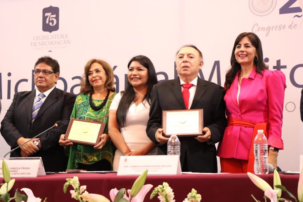 La 75 Legislatura del Estado reconoció hoy el gran valor de las y los maestros de Michoacán con la entrega de la Medalla al Mérito Docente 2024, a María del Carmen Vaca Ramírez, del ámbito de la educación especial, y a la escuela preparatoria Taximaroa, de Ciudad Hidalgo.