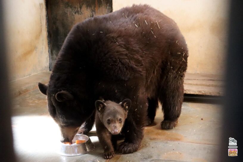 Tras más de dos décadas, el Zoológico de Morelia logró la reproducción exitosa de una cría de oso negro, la cual permanece en el área de cuarentena al lado de su madre.