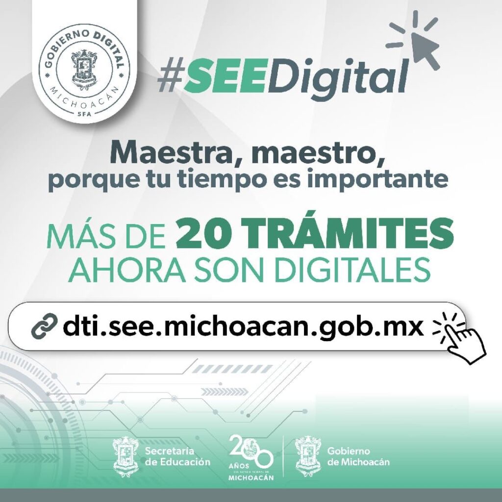 Las maestras y maestros del interior del estado ya no necesitan trasladarse a la capital michoacana para realizar los trámites más recurrentes en Secretaría de Educación del Estado (SEE), ahora pueden ser a distancia con SEEDigital.