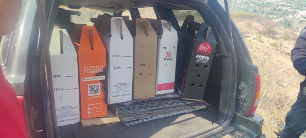 En la primer intervención, los guardias civiles llegaron a un terreno ubicado en la comunidad de Puerto Itzipio, de Jungapeo donde algunas personas se encontraban en vehículos que transportaban a las aves, a quienes se les informó que esa actividad es ilegal, lo cual se acató por los presentes quienes se retiraron pacíficamente.