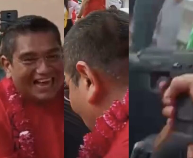Las redes sociales difundieron el momento preciso en el que el abanderado de la alianza “Fuerza y Corazón por Coyuca”, Alfredo Cabrera Barrientos, es ejecutado a escasos tres metros del templete donde habría de dar su mensaje a sus simpatizantes, luego de haber realizado una caminata, en el marco del último día de campaña.