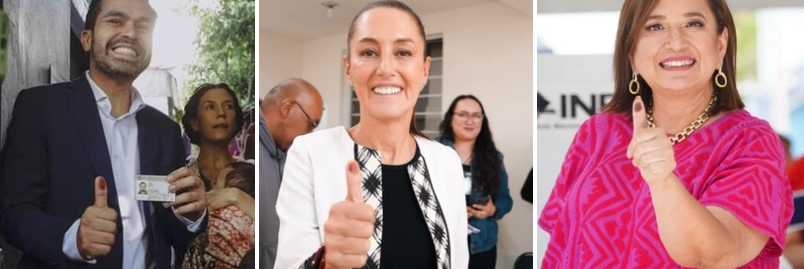 En el marco de la jornada comicial, los tres candidatos a la Presidencia de la República, Xóchitl Gálvez Ruiz, Claudia Sheinbaum Pardo y Jorge Álvarez Máynez, depositaron sus respectivos votos en colonias de la Ciudad de México.