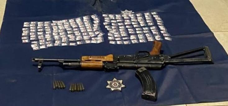 Posteriormente, y tras realizarles una inspección, les fueron localizados entre sus pertenencias 187 envoltorios de sustancia granulosa con las características propias de la droga citada; un arma de fuego calibre 7.62 X 39 milímetros y 11 cartuchos útiles.