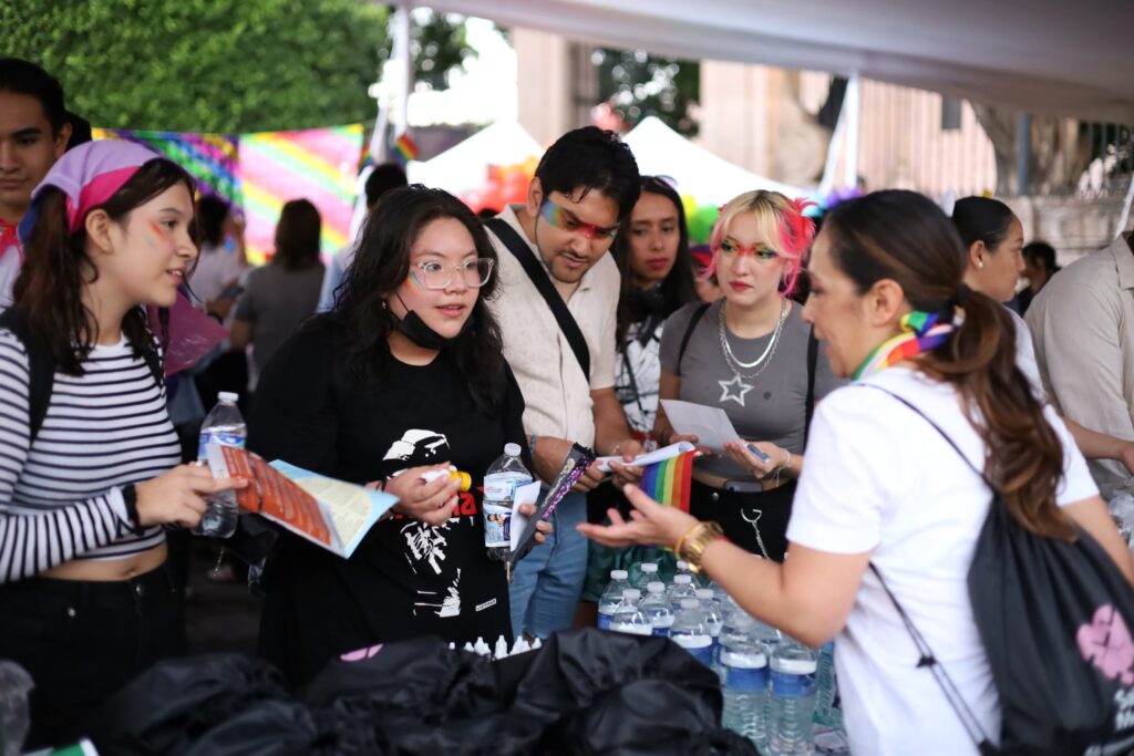 Con gran afluencia en la Plaza Benito Juárez, se distribuyó entre los participantes en la marcha del orgullo LGBTTTIQ+, 2 mil condones, 2 mil sobres de lubricantes, mil volantes con información y orientación sobre salud mental, además de 500 sobres de vida suero oral, agua embotellada y mil frascos de plata coloidal.
