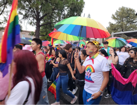 A las 5 de la tarde, la marcha dio inicio desde la avenida Acueducto, justo frente a las instalaciones de la XXI Zona Militar, avanzando con determinación y alegría hacia la Catedral de Morelia. Ni siquiera la lluvia, que comenzó a caer en ese momento, fue capaz de apagar el espíritu festivo de la multitud. Con banderas multicolores ondeando y consignas de amor y respeto resonando en el aire, los asistentes marcharon con un propósito claro: celebrar su identidad y exigir igualdad de derechos.
