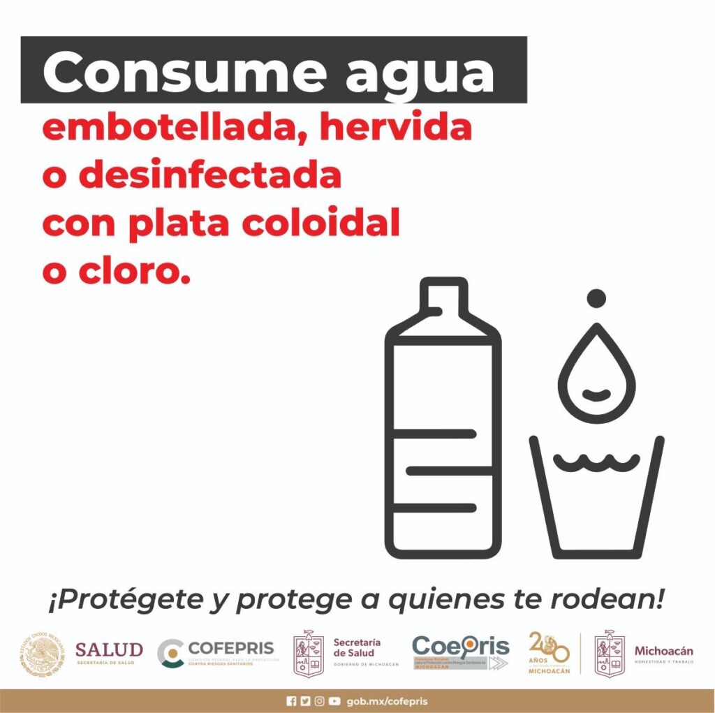 Es importante que la población afectada se hidrate con agua embotellada o hervida durante tres minutos, o bien, después de haber sido clorada con dos gotas por cada litro y dejarla reposar durante 30 minutos, en recipientes de plástico o vidrio, siempre antes de beberla.