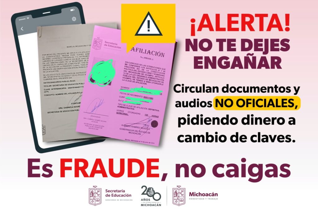 La Secretaría de Educación del Estado (SEE) interpuso una denuncia ante la Fiscalía General del Estado (FGE) y alerta ante el intento de fraude; luego de que, a través de WhatsApp y redes sociales, circularan documentos falsos pidiendo dinero a cambio de una plaza.