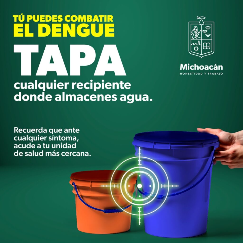 La Secretaría de Salud de Michoacán (SSM) recuerda a la población mantener en el hogar la estrategia lava, tapa, voltea y tira todo aquello que acumule agua, con el propósito de evitar la reproducción del mosco Aedes aegypti, transmisor del dengue, zika y chikungunya.