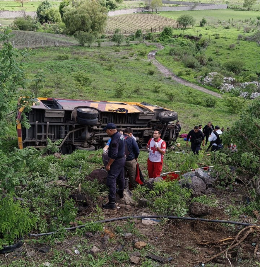 Dos personas murieron y al menos 25 resultaron heridos, algunos de ellos de gravedad, al registrarse un choque volcadura de un vehículo y un camión de pasajeros, cuando se encontraron de frente en Ciudad Salud, en este municipio de Charo.