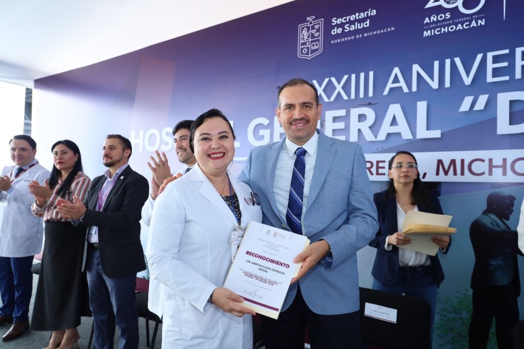 En el acto conmemorativo del aniversario del hospital, el secretario de Salud de Michoacán, Lázaro Cortés Rangel, reconoció la labor y entrega de los trabajadores que atienden con calidez y sentido humano a los usuarios que solicitan atención médica en esta institución fundada en 1901.
