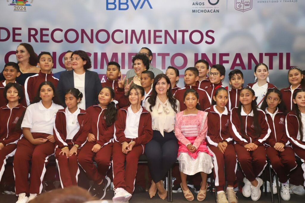 Fueron 53 niñas y niños ganadores de la Olimpiada los recibieron su reconocimiento, computadora y más herramientas escolares por parte de la SEE, además de becas para continuar su formación en la secundaria, por parte de la Fundación BBVA.