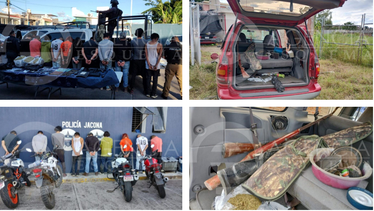 Droga y armas incautadas, resultado de operativo en la zona Zamora-Jacona; hay 10 detenidos