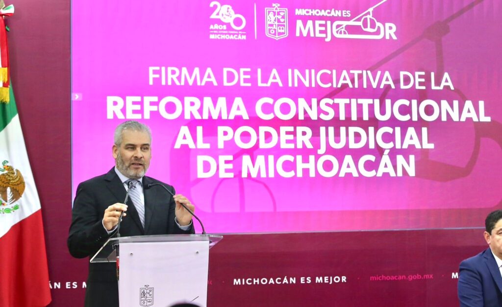 “Michoacán es el primero de los 32 estados en presentar esta reforma local, la cual propone que las juezas, jueces, magistradas y magistrados sean electos por voto universal, directo y secreto por el pueblo, además de que se respetan los derechos laborales del personal del Poder Judicial, así como la carrera judicial para ocupar los puestos que van desde escribiente hasta secretario de acuerdos”, refiere el comunicado de prensa oficial.