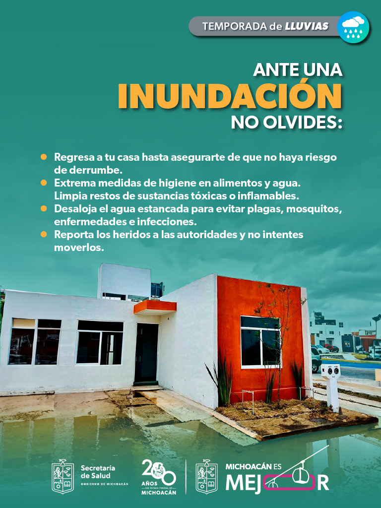Durante la temporada de lluvias suelen ocurrir enfermedades que ponen en riesgo el bienestar de las familias, por ello la Secretaría de Salud de Michoacán (SSM) emite las siguientes medidas preventivas.