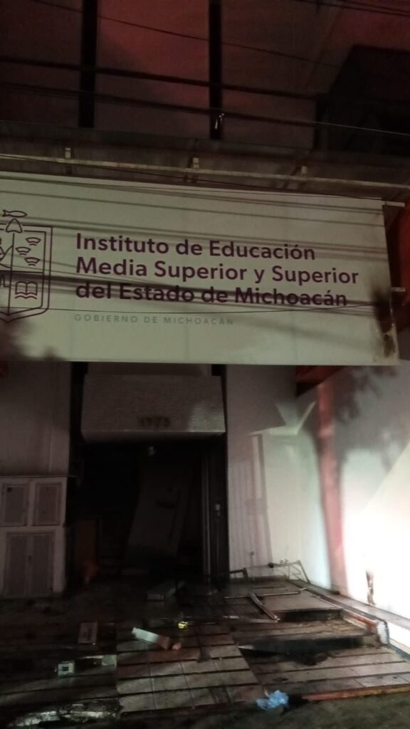 Con prácticas gangsteriles, presuntos normalistas atacaron la madrugada de este jueves las oficinas del Instituto de Educación Media Superior y Superior del Estado de Michoacán (IEMSySEM) en Morelia, donde emplearon una camioneta incendiada como ariete para penetrar al inmueble, donde hubo destrozos.