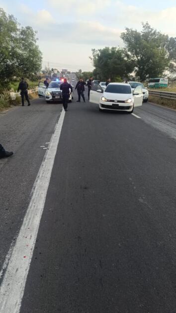 Al parecer presenta impactos de bala; cerca del cuerpo del infortunado las autoridades localizaron un automóvil de color blanco, el cual tenía las puertas abiertas y con huellas de sangre; al parecer era propiedad del finado.