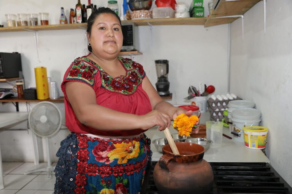 Compartió que desde que era niña sus abuelas le enseñaron la receta, además del amor por la cocina y la sazón para cambiar los ingredientes de este centenario atole que se prepara en esta temporada en que florece el cempasúchil, mismo que combina con el frío otoñal y la visita a los panteones.
